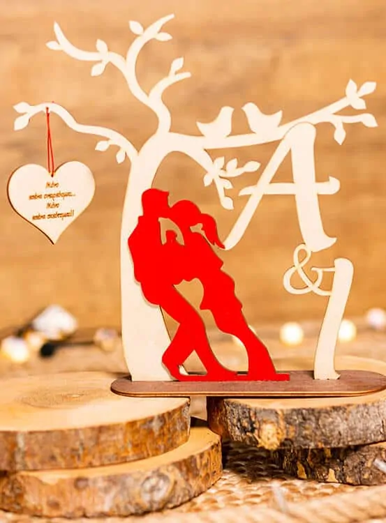 Δείξτε την αγάπη σας στον σύντροφό της ζωής σας, χαρίζοντας ένα πρωτότυπο και όμορφο ξύλινο δώρο από τις δημιουργίες του ksilokosmos.gr. Για την ημέρα των ερωτευμένων σας προτείνουμε το Δώρο Αγίου Βαλεντίνου Ζευγάρι Με Κρεμαστή Καρδιά. Με φαντασία και μεράκι διακοσμήσαμε αυτό το υπέροχο δώρο με ένα όμορφο δέντρο στο χρώμα του ξύλου, με μια κρεμαστή καρδιά με δυνατότητα να επιλέξετε το δικό σας κείμενο και ένα κόκκινο ζευγάρι, αγκαλιασμένο, για μια πιο όμορφη αίσθηση. Δώστε μας να χαράξουμε τη δική σας πρωτότυπη ευχή μέσα στην καρδιά και χαρίστε το στην/ον πολυαγαπημένη/ο σας, την πιο ερωτευμένη μέρα του χρόνου.